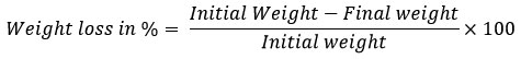 The lab-scale degradation of LDPE Sheets regularly used for packaging purposes was carried out by cutting the LDPE sheets into 2 by 2 cm, followed by exposing the LDPE sheets to the potent isolates for 30 days in sterile MSM medium at 30 °C in shaking conditions at 120 rpm. Followed by the incubation period, LDPE sheets were washed with 2% SDS for 3-4 Hours, and afterwards it was cleaned up with deionized water and dried at 60 °C overnight. After the incubation, the dry weight of the sheets was measured by the following formula.25