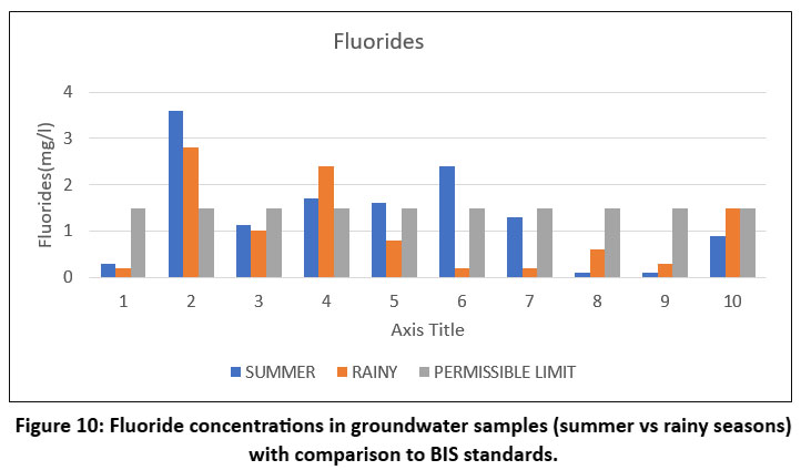 ![]() | Figure 10: Fluoride concentrations in groundwater samples (summer vs rainy seasons) with comparison to BIS standards.