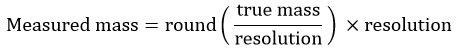 Rounding error: Each mass value was rounded to the nearest readability unit using: