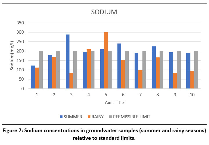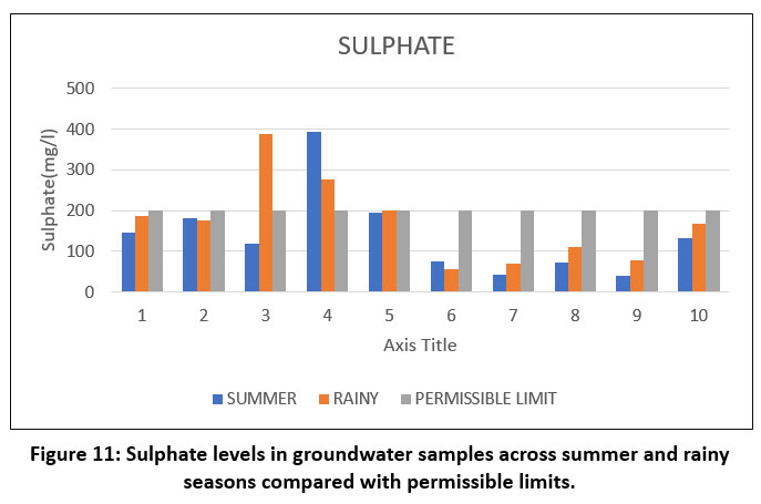 ![]() | Figure 11: Sulphate levels in groundwater samples across summer and rainy seasons compared with permissible limits.
