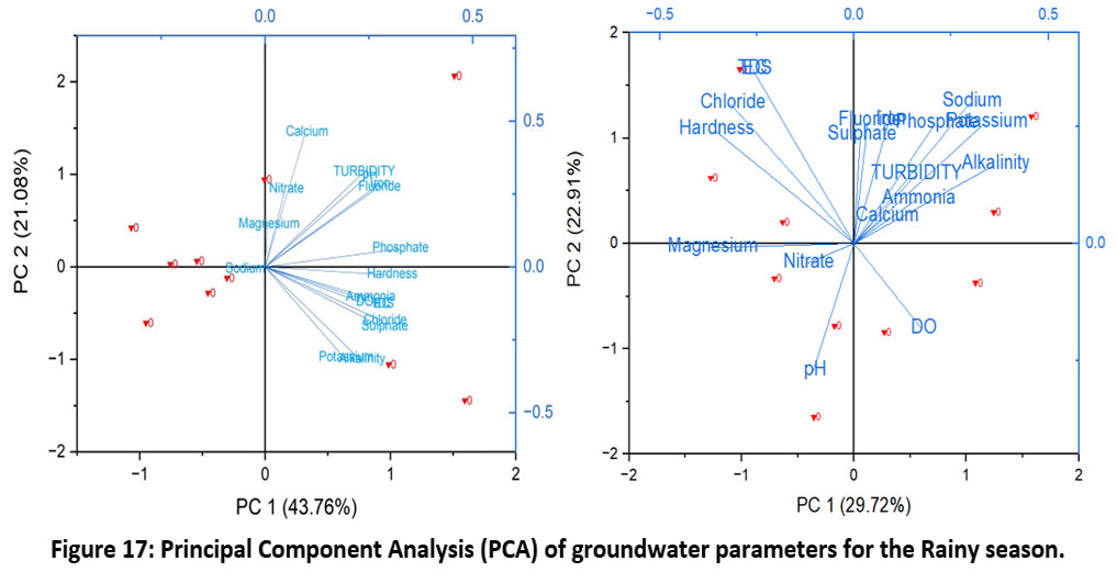 ![]() | Figure 17: Principal Component Analysis (PCA) of groundwater parameters for the Rainy season.