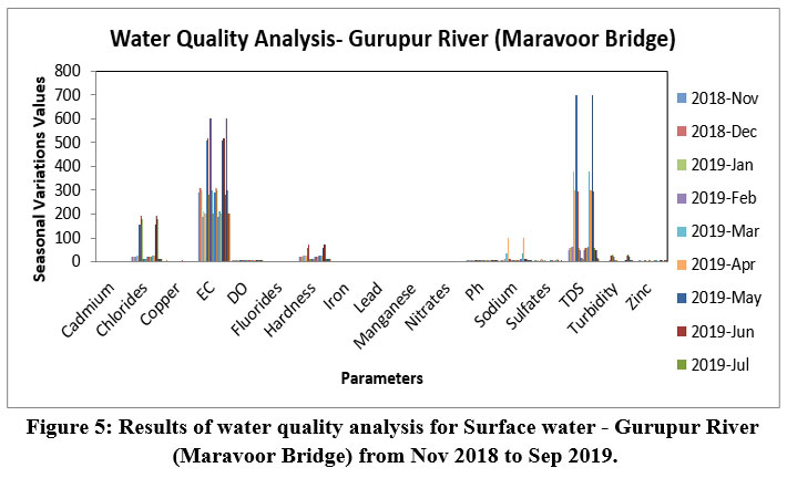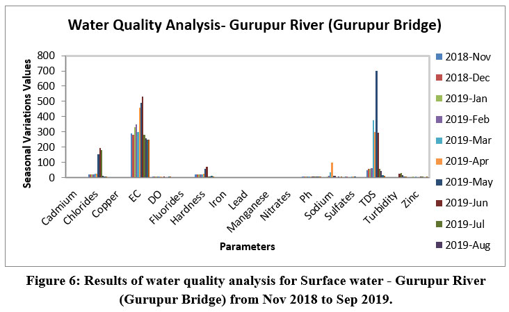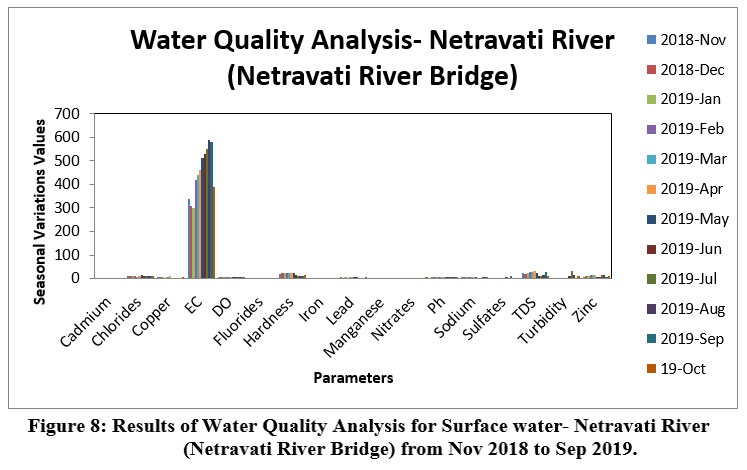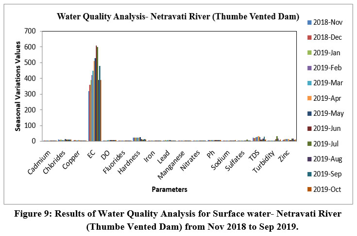 ![]() | Figure 10: Results of Water Quality Analysis for Surface water- Netravati River (Pane Mangalore Bridge) from Nov 2018 to Sep 2019.
