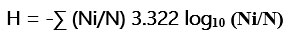 Here, Ni implies the number of individuals of a species, and N represents total number of individuals of all species.