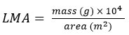 True leaf mass per area (LMA) was computed for each leaf as: