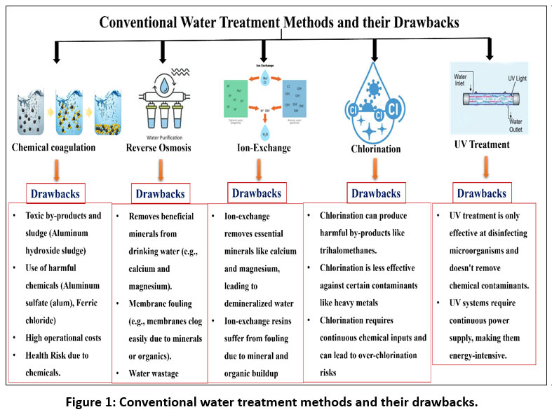 ![]() | Figure 1: Conventional water treatment methods and their drawbacks.