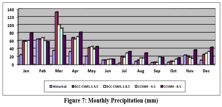 By the end of March melting of the snow starts and the rainy season is coming, it can be observed in (RCP) models shown in Figure. 7.