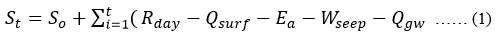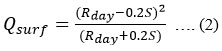The surface runoff is computed by two different methods: one is the Soil Conservation Service (SCS) method and second is Ampt and Green penetration technique, we used the first technique for this research. The equation for explaining the SCS CN2 is followed by the bottom calculation (2).